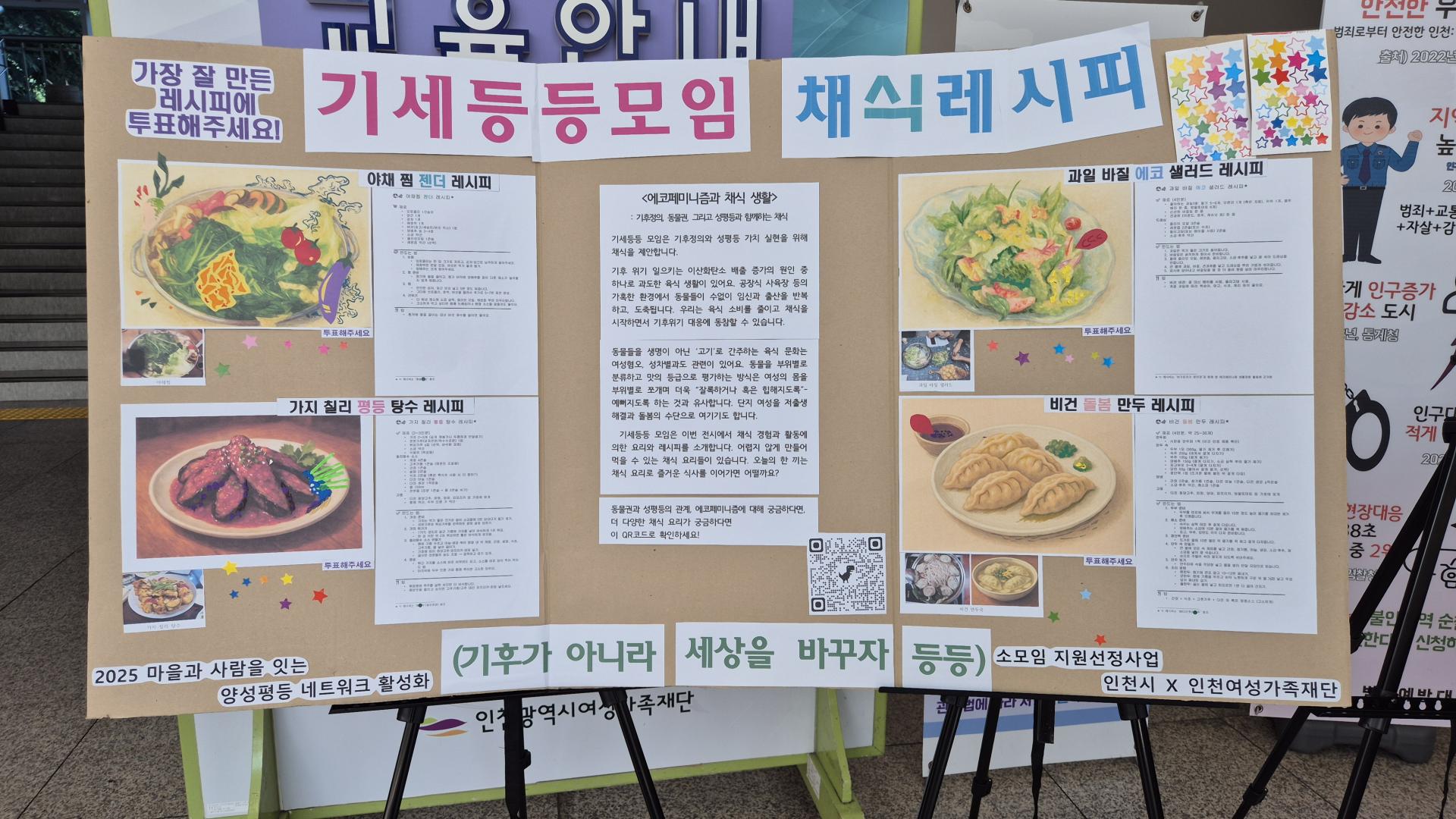 인천여성민우회의 소모임 '기세등등 모임'에서는 에코페미니즘과 채식생활이라는 주제로 채식레시피를 전시합니다.