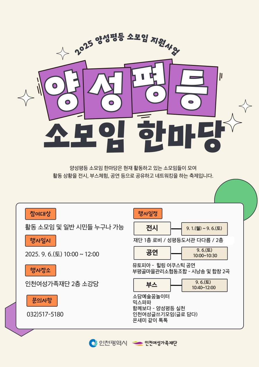 *인천여성민우회 기세등등모임 및 활동은 인천시와 인천여성가족재단에서 주최하는 '2025년 마을과 사람을 잇는 양성평등 네트워크 활성화 소모임 지원선정사업'의 일환으로 진행됩니다.
