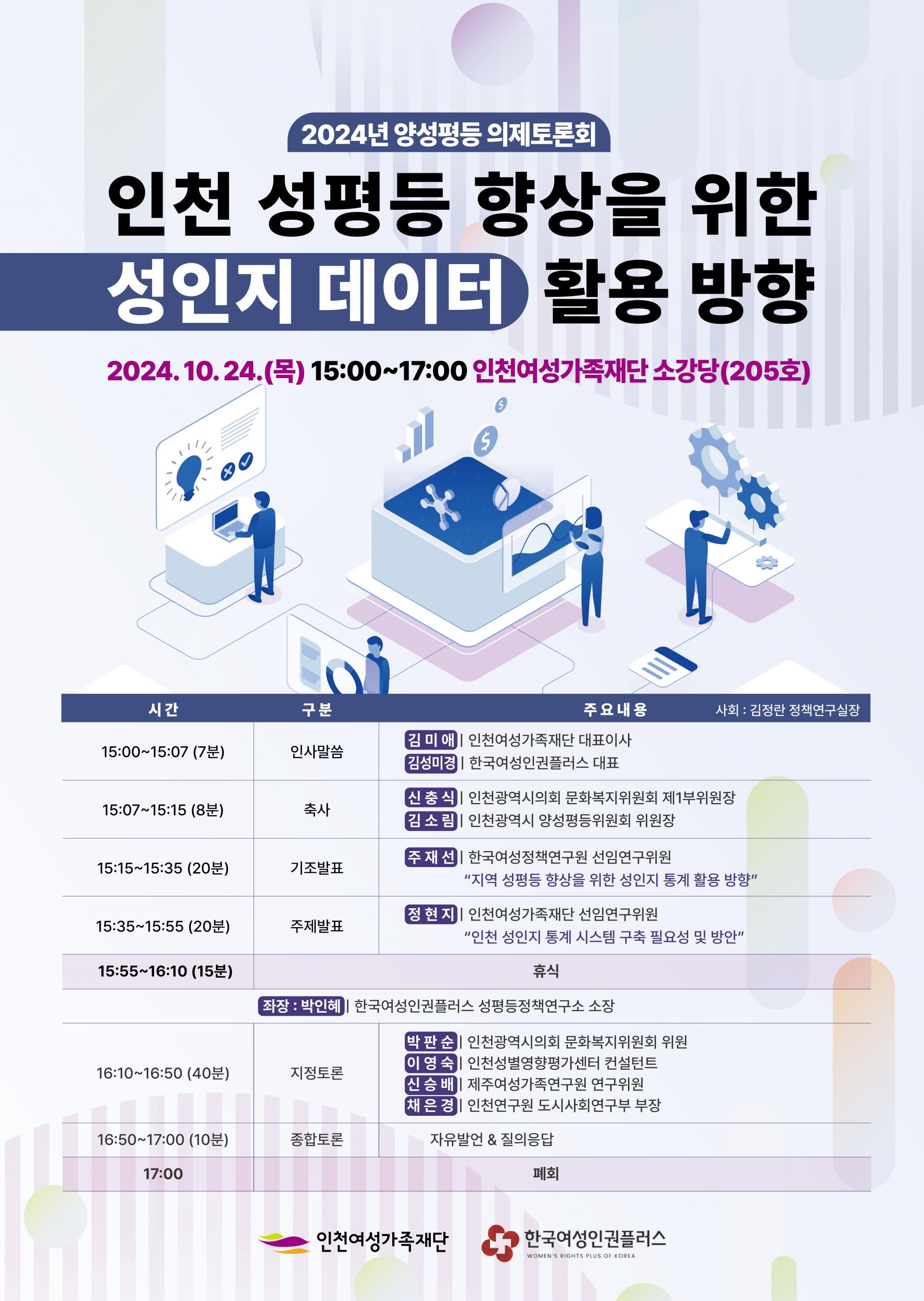 인천여성가족재단에서는 '인천 성평등 향상을 위한 성인지 데이터 활용 방향'을 주제로